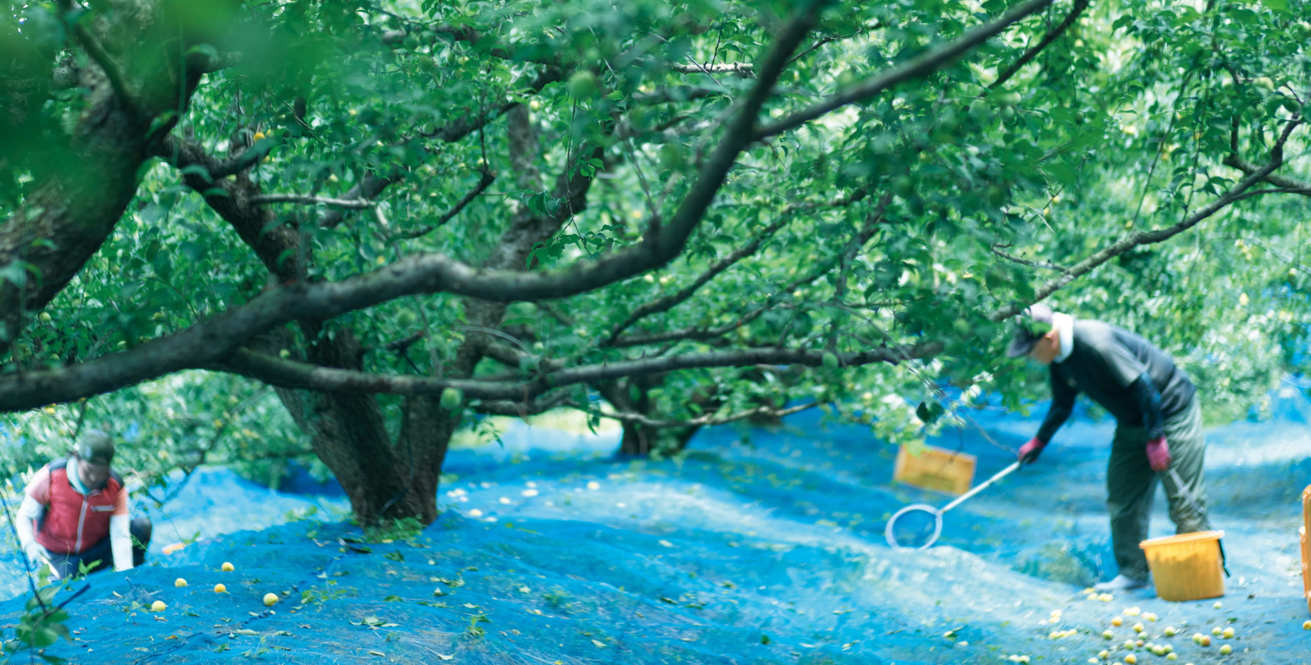 In the Minabe-Tanabe region, high-quality Ume have been produced sustainably for the last 400 years. Ume trees are strategically located on the nutrient-poor mountain slopes alongside fuelwood forests. This arrangement prevents landslides and helps retain water and nutrients for the Ume trees.