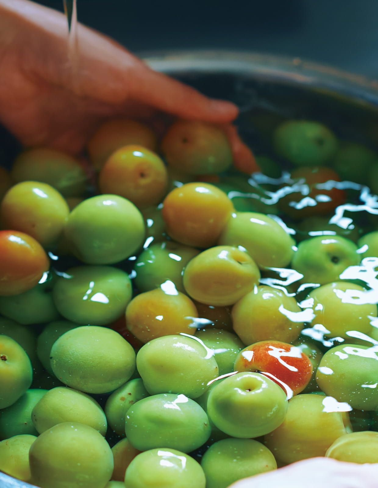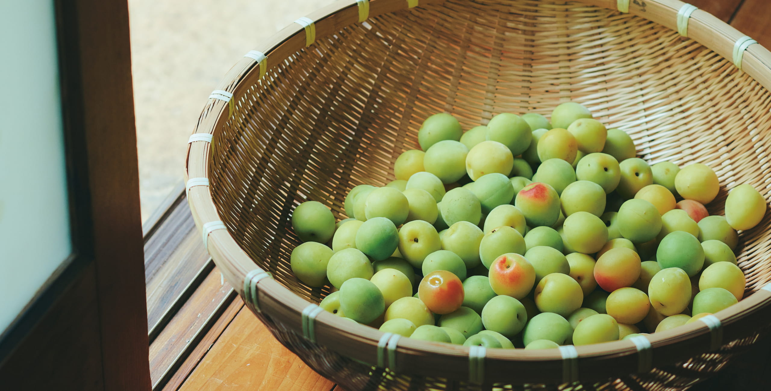 The harvest of young Nanko-Ume is from late May 10 to mid-June. From mid to late June, the sweet-sour fragrance of the ripe, yellow Ume spreads all over the area. Young Ume are typically used for making Umeshu, but in Wakayama, fully ripe Ume are also often used. When Ume fully ripen, their pulp softens and develops a deeply fruity flavor before naturally falling the trees.
