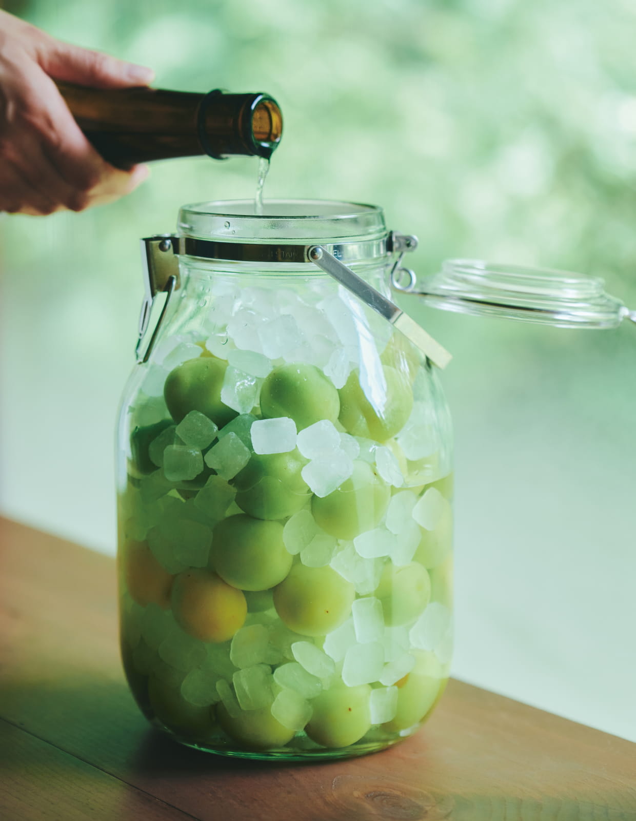 Base alcohol can significantly influence the taste of Umeshu. Distilled liquor is popular for homemade Umeshu due to its tasteless and odorless nature, allowing the Ume flavor to be fully enjoyed. Brewers alcohol also accentuates the Ume flavor well. Brandy offers a rich flavor that matches the mellow aroma of the Ume fruit. Sake enhances a smooth, deep flavor. Recently, unique base alcohol types are also increasing, such as Gin and Awamori, and Shochu.